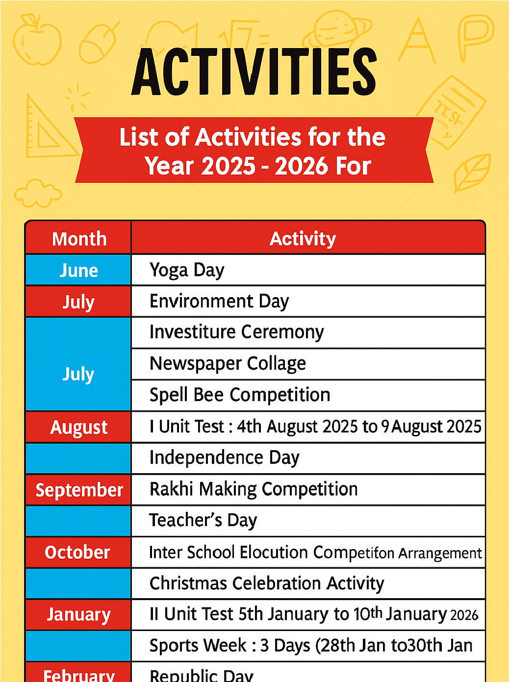 | 1st Week of September | 🎤 Elocution / Quiz Competition |